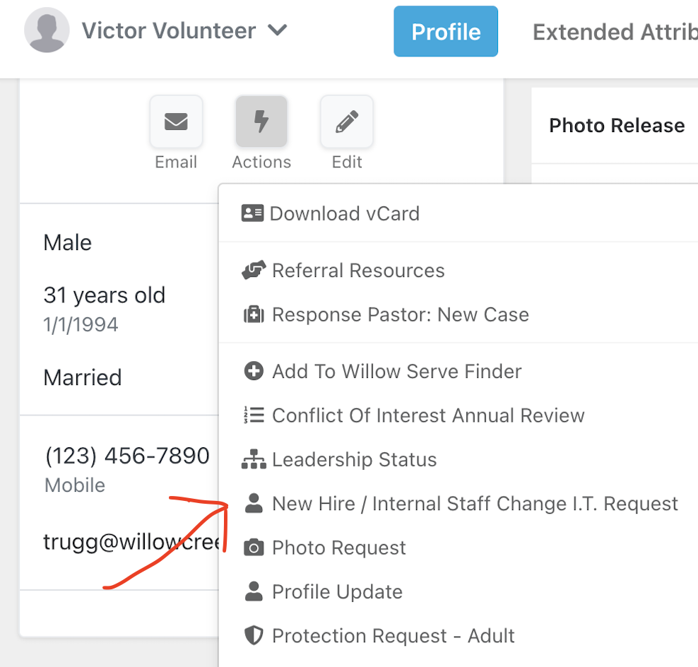 - Choose "New Hire / Internal Staff Change I.T. Request".